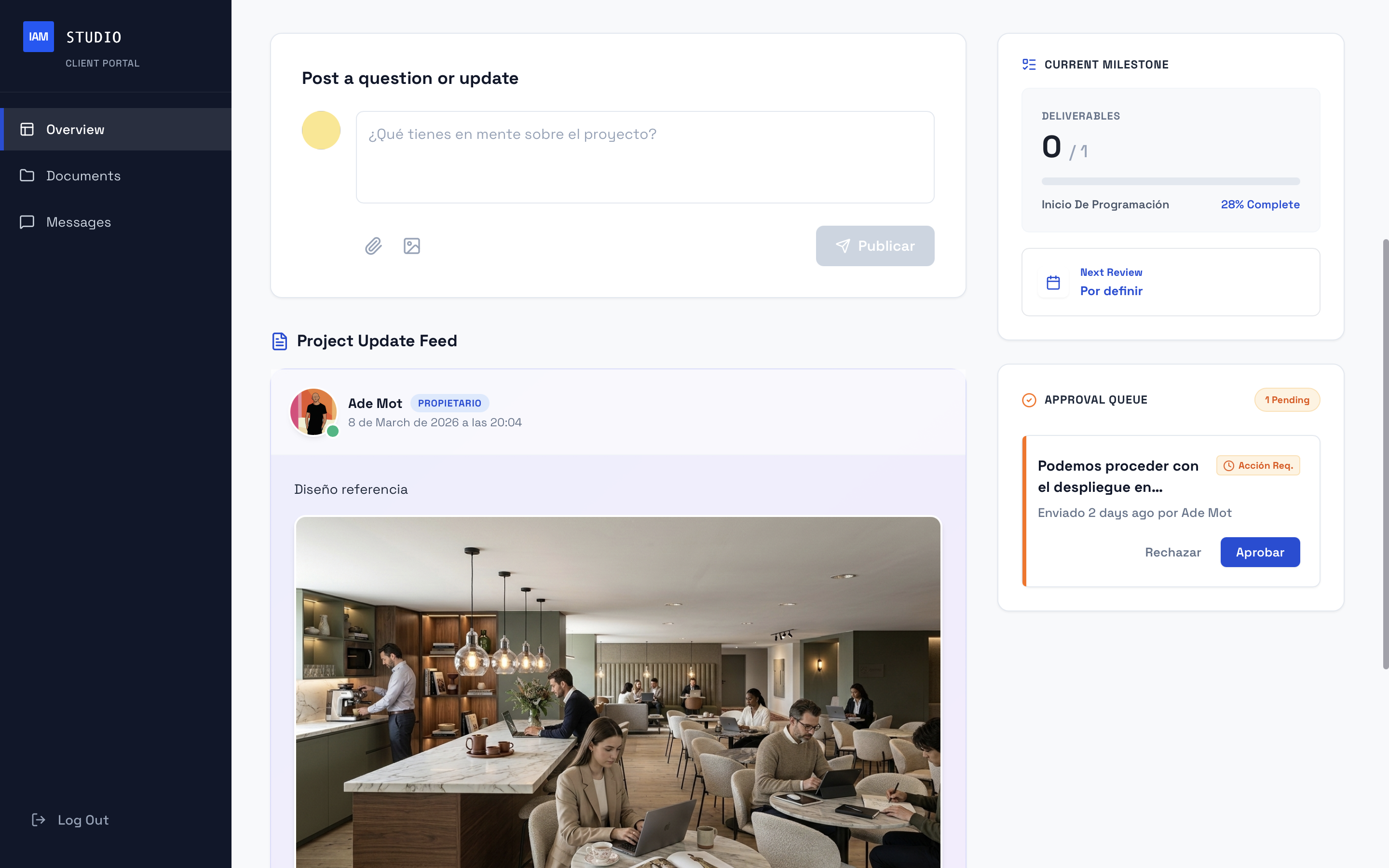 Connect your team, manage projects, and streamline communication in one intuitive glass-panel dashboard. Control the chaos and deliver excellence with IAM Studio.